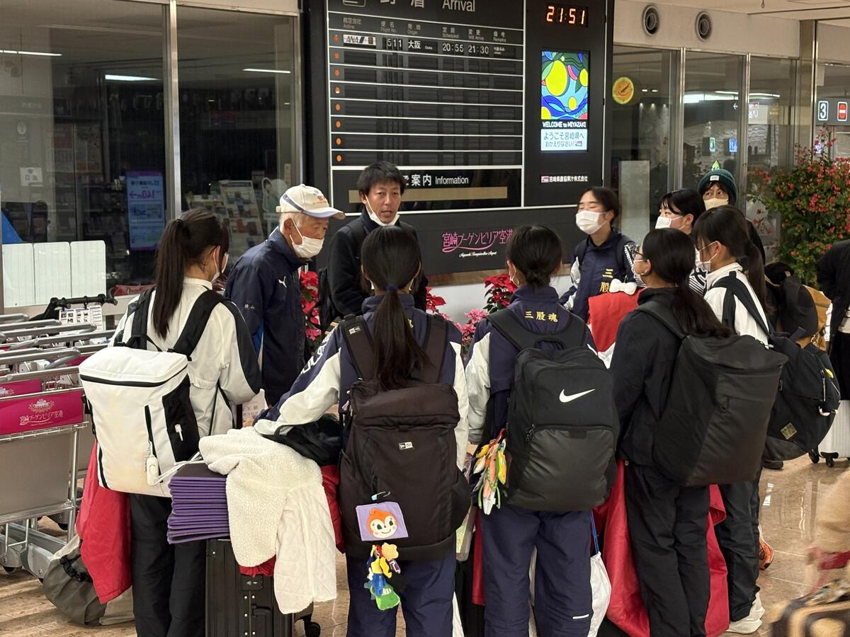 その場所に、女子駅伝部の選手たちが報告に来てくれました。自分との勝負にしっかりと向き合うことができた様子です。また、昨夜の9時55分には、宮崎県中学校体育連盟会長であられる、赤江中学校の谷口行孝校長より、メッセージと写真が送られてきました。『本当にいい生徒さんですね。競技場以外でもマナーがよくて、何よりも明るい!』と嬉しいメッセージでした。美しい残り姿です。