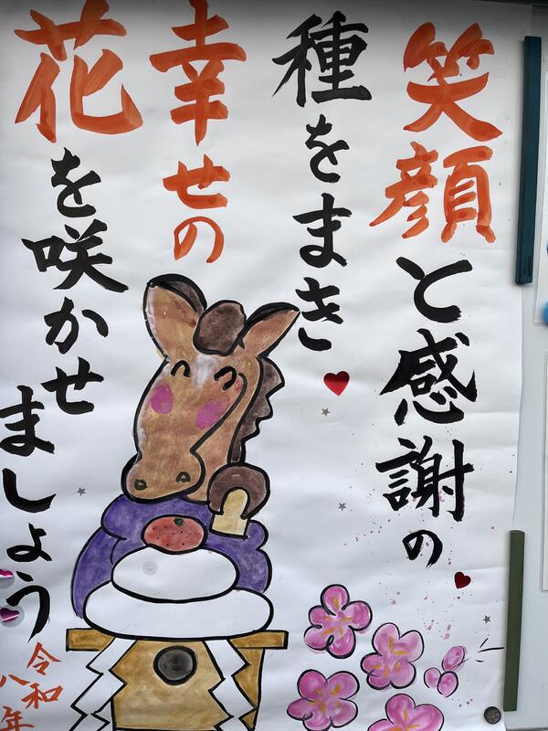 校門の掲示板人は、年末から明るい掲示!ありがとうござします。