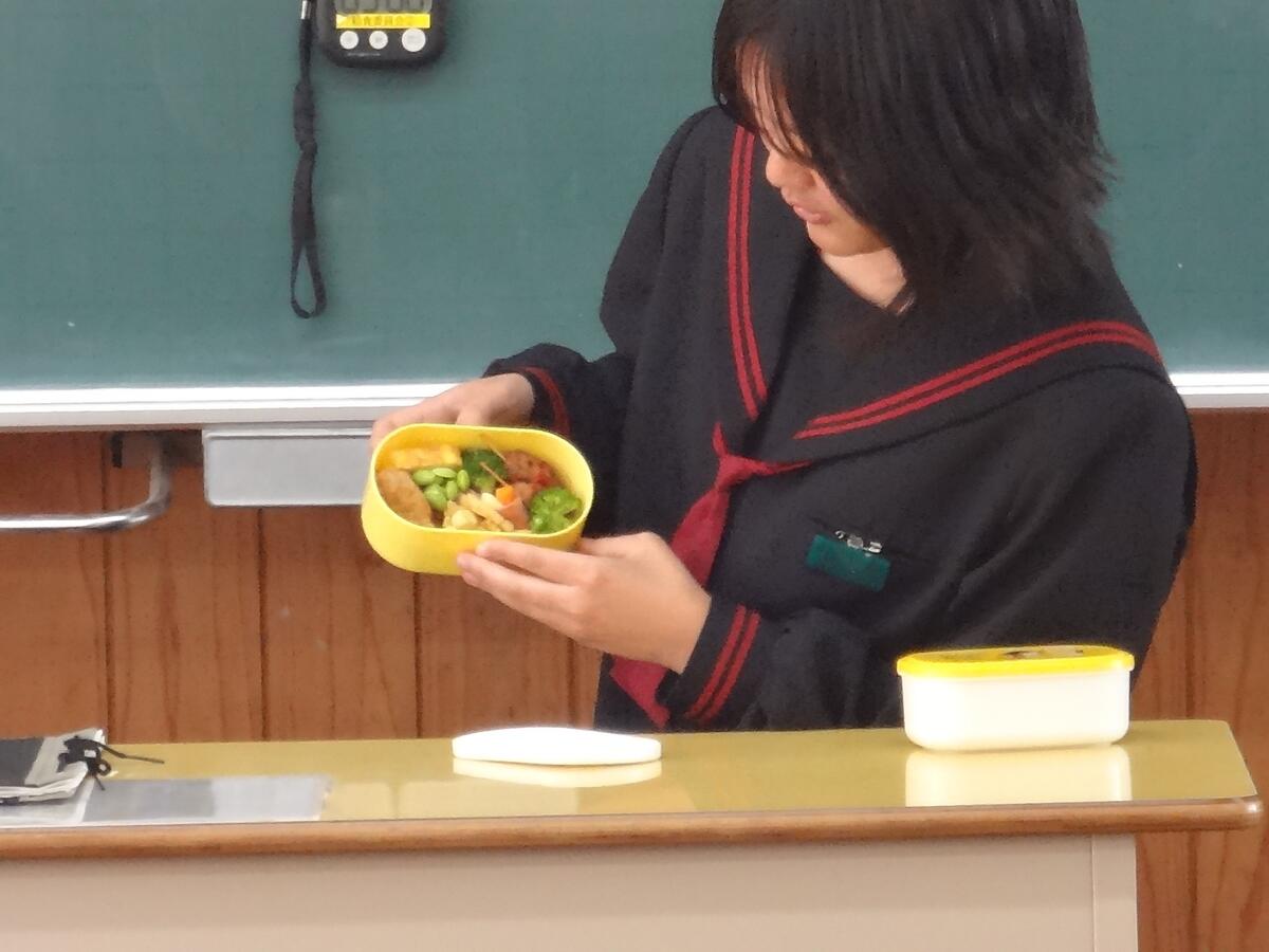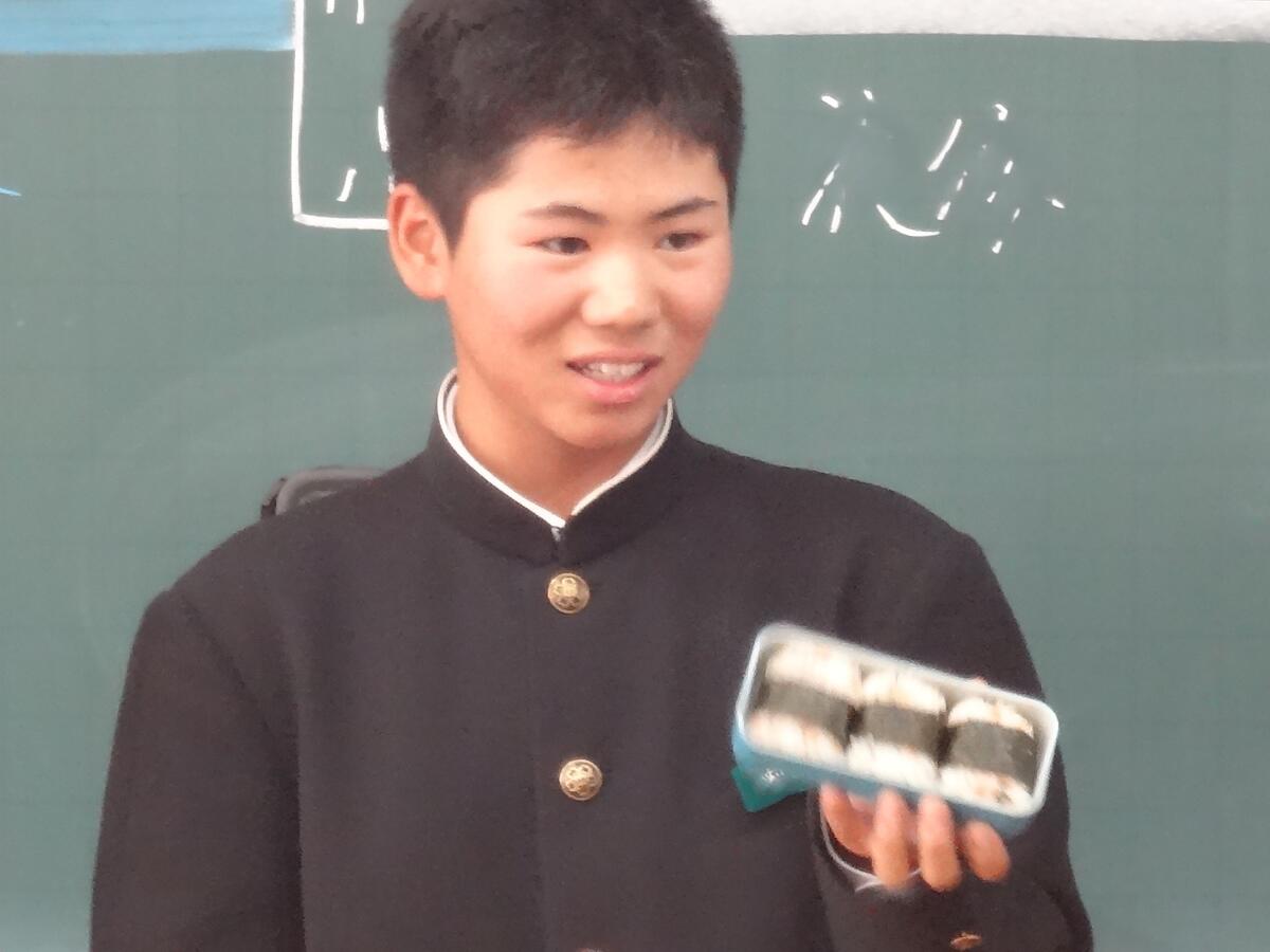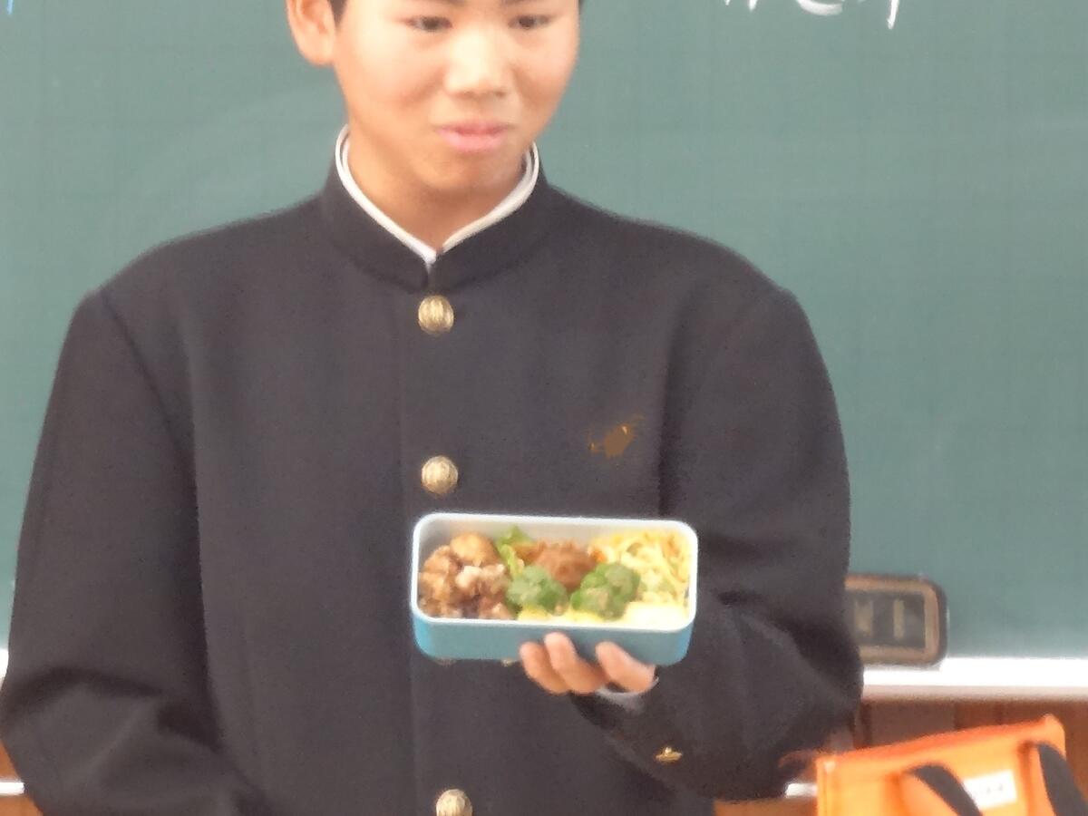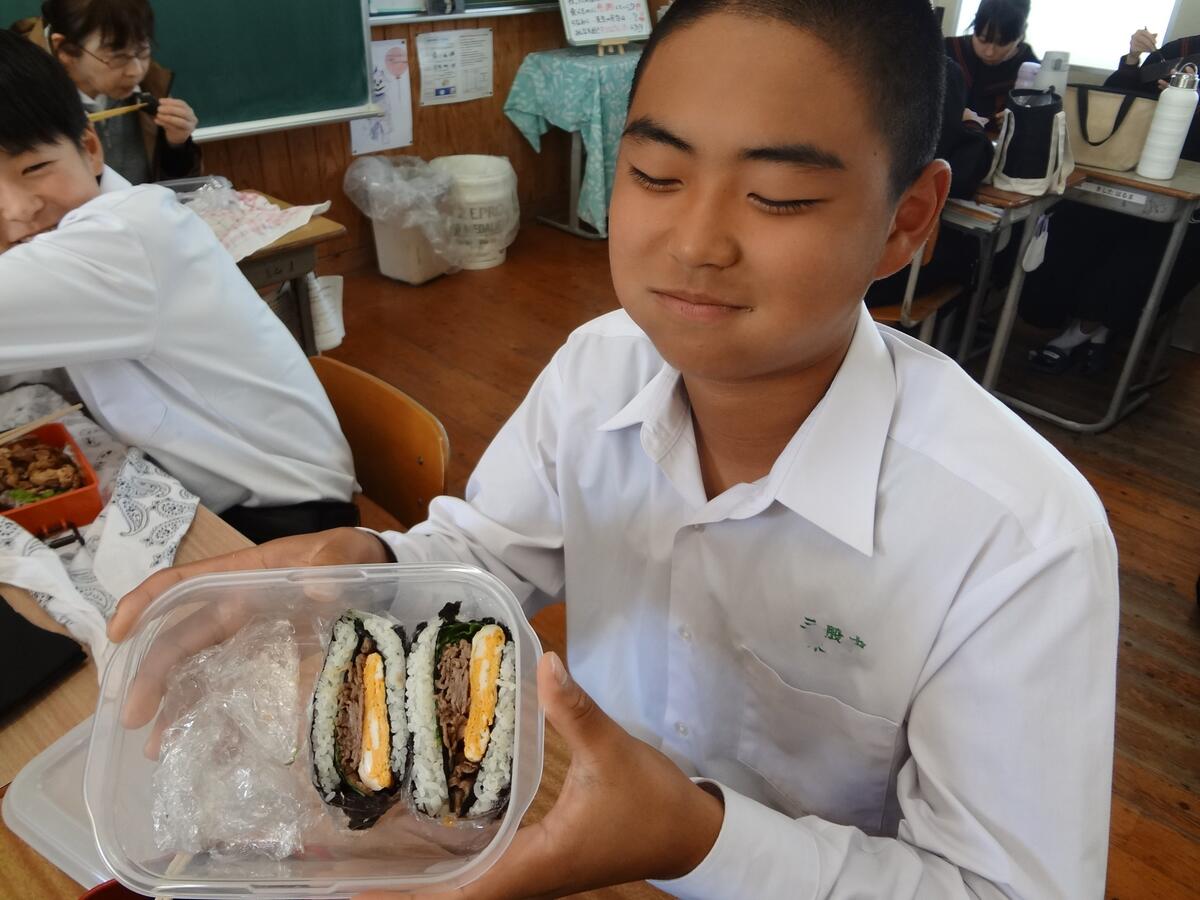 学級では、おにぎり弁当の工夫したことや、作り方を発表し、賞賛のシャワーを浴びている生徒もいました。保護者のみなさんもご協力ありがとうございました。