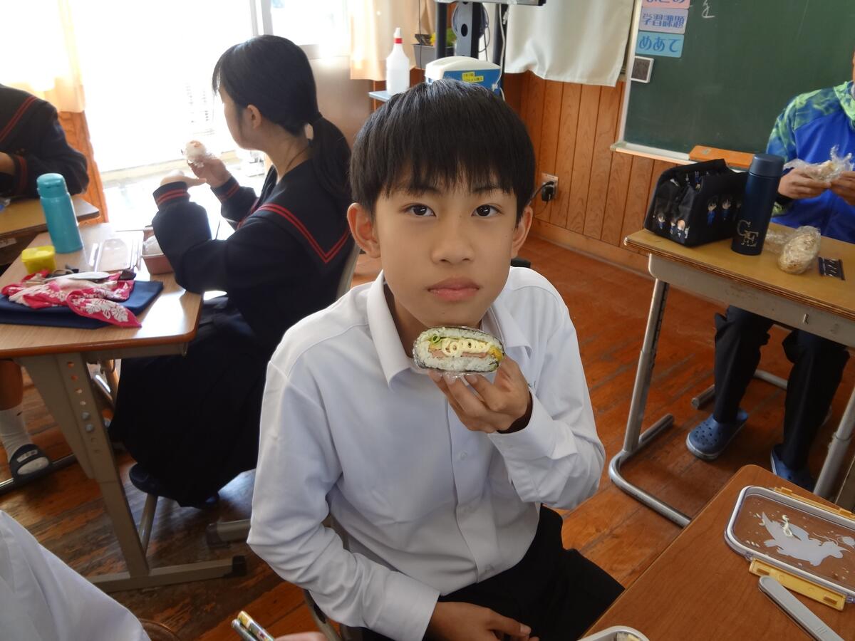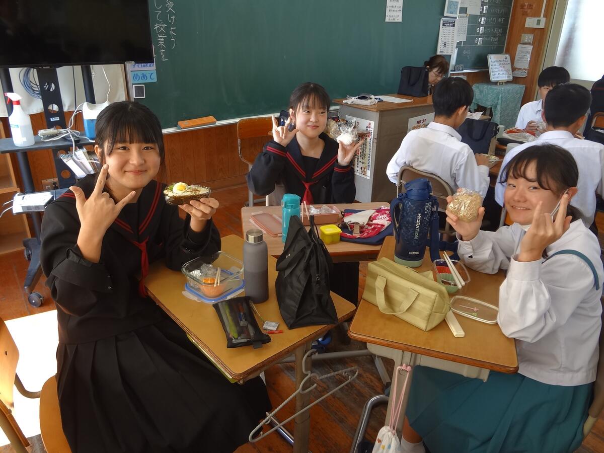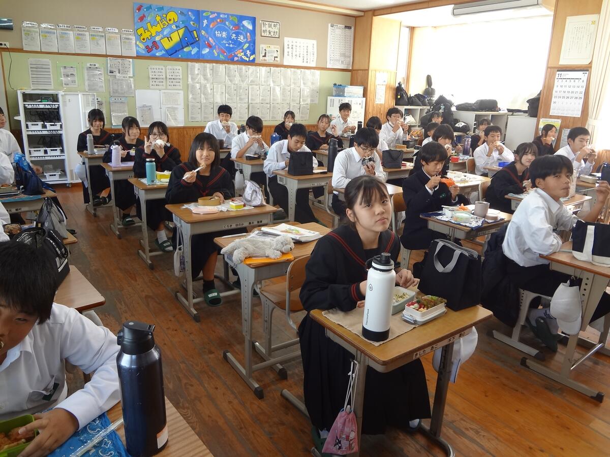 汗ばむ陽気に笑顔の多い一日でした。『こどもの作るお弁当の日』に、給食も美味しいのですが、いつにも増して昼食時間が楽しみの様子でした。登校時に生徒と話してみると、「いつもより1時間早く起きました」「早く食べたいです」「自信作です」などなど、元気のよい言葉が返ってきました。何かをきっかけに、張り切って取り組む姿は確実に心を動かし、より良い成長へつながります!