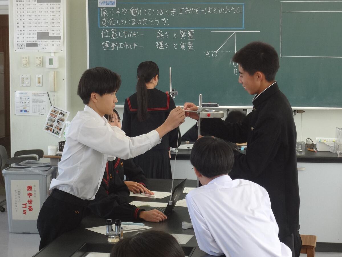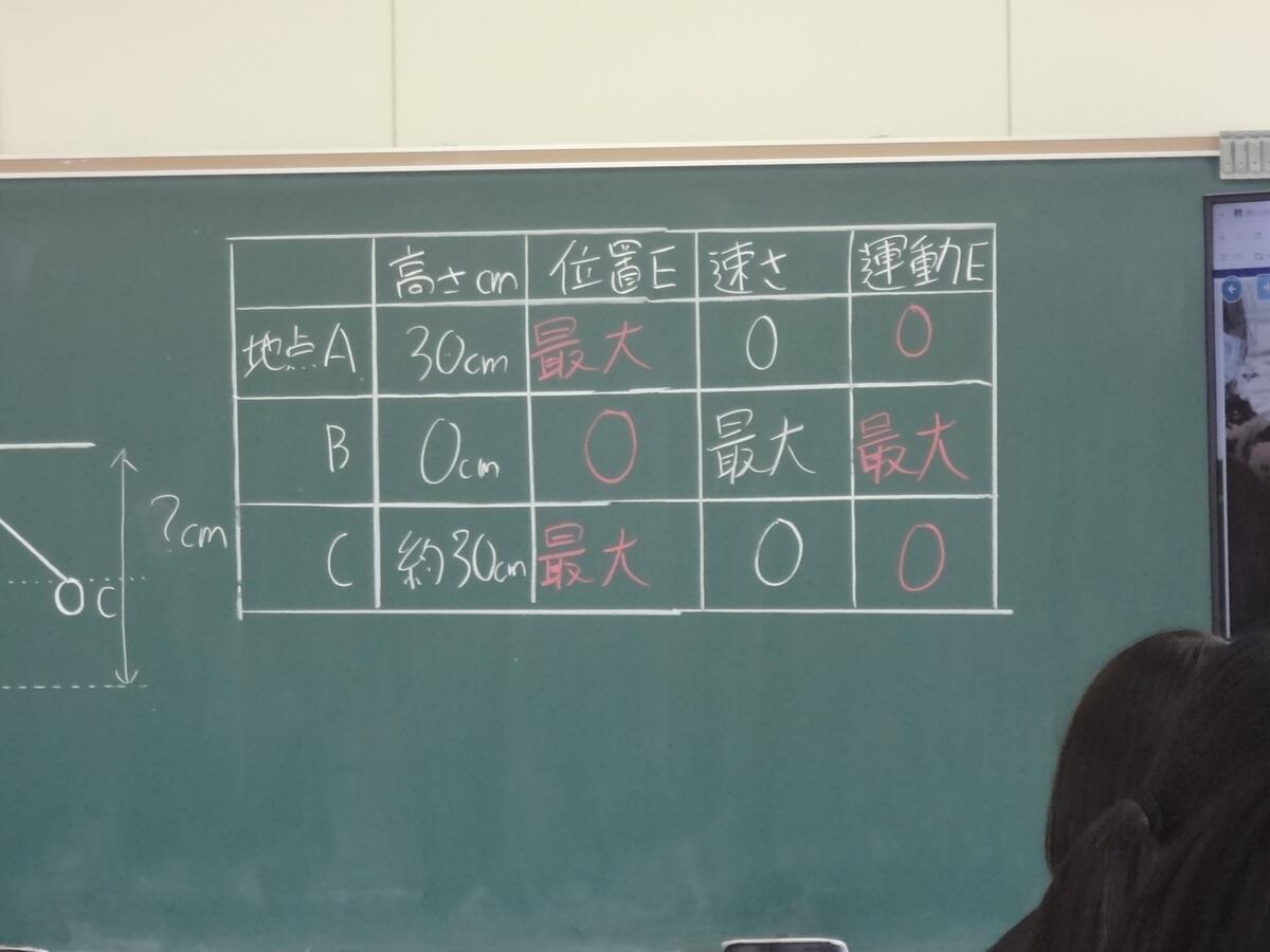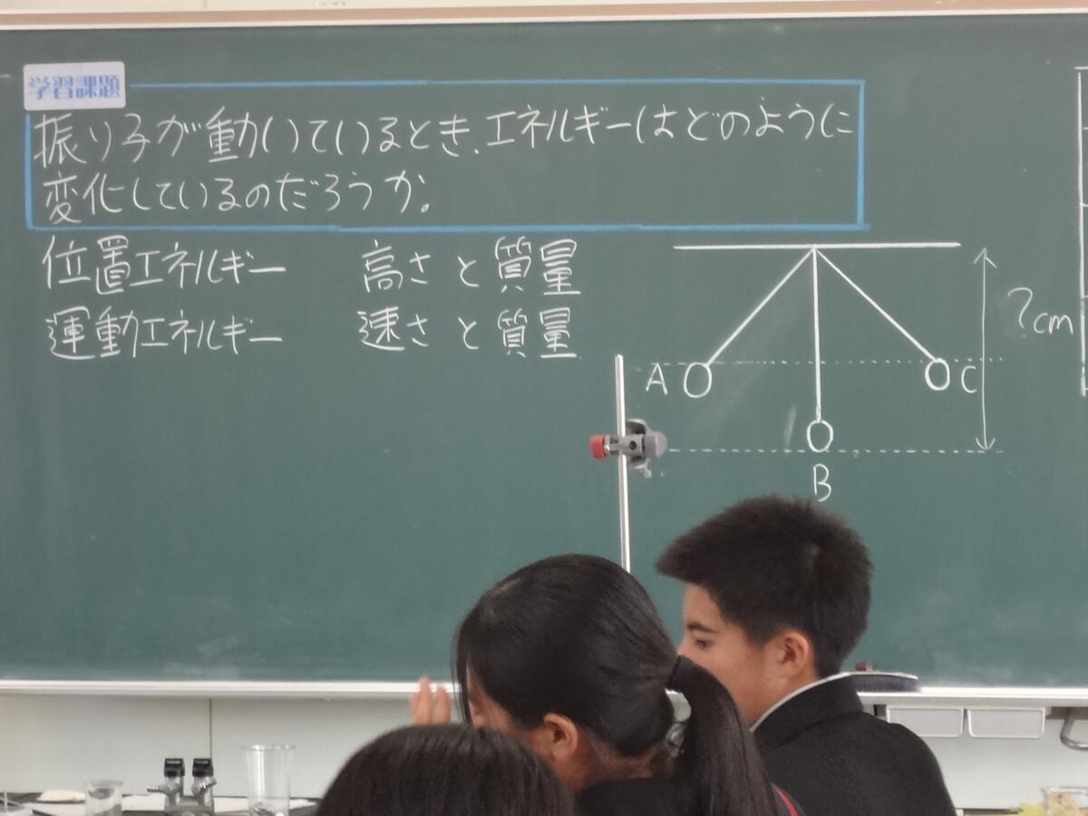 今日は、3時間目に太田原先生の研究授業が行われました。『位置エネルギー と 運動エネルギー』の単元名で、2つのエネルギーの関係性を検証し、自分の言葉で説明でるようにすることを目標とされていました。