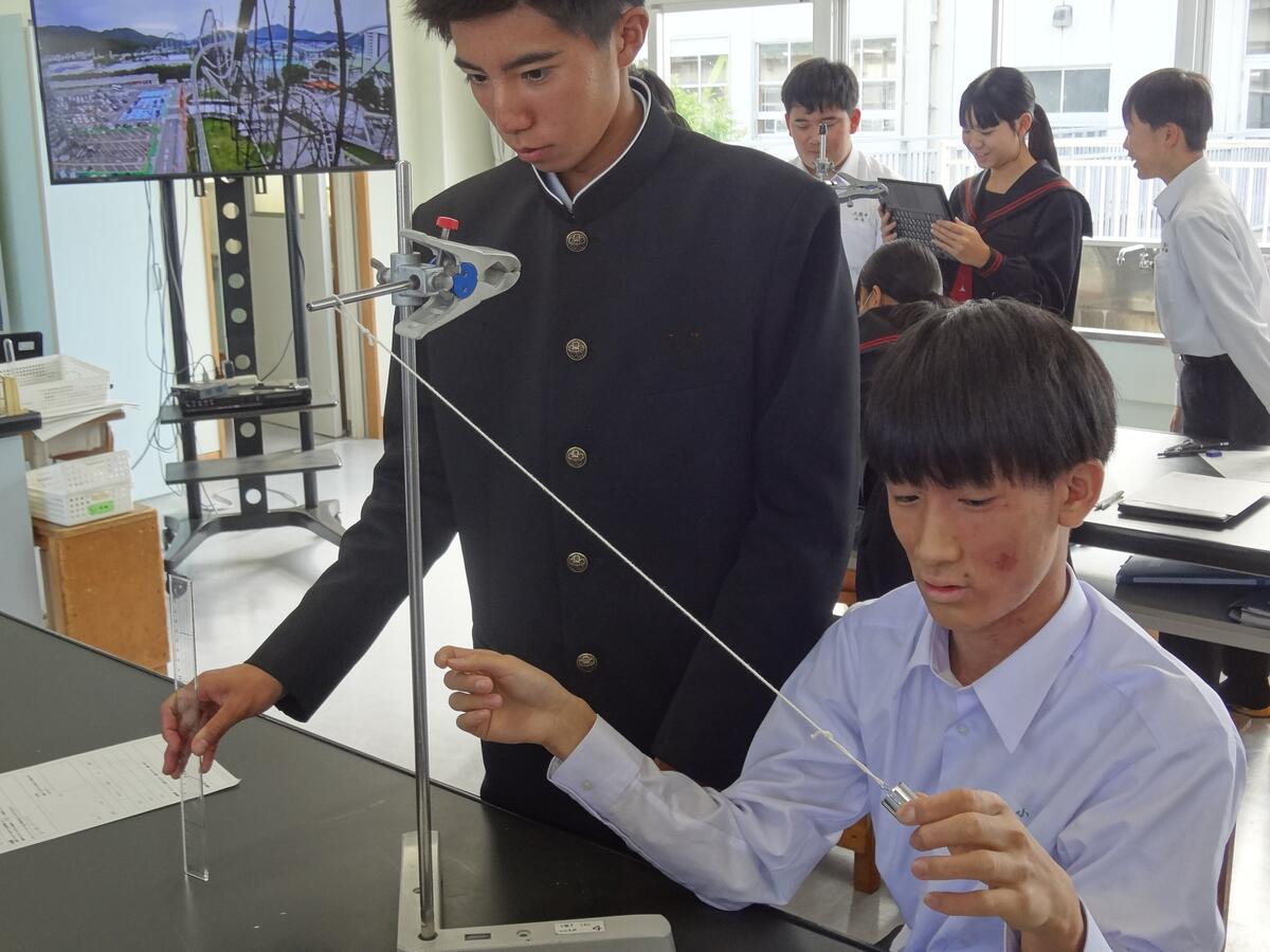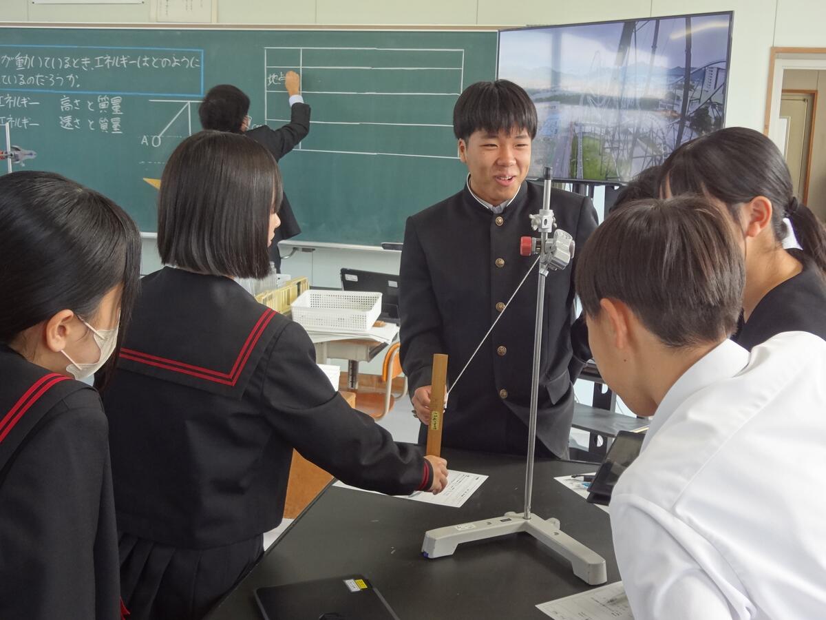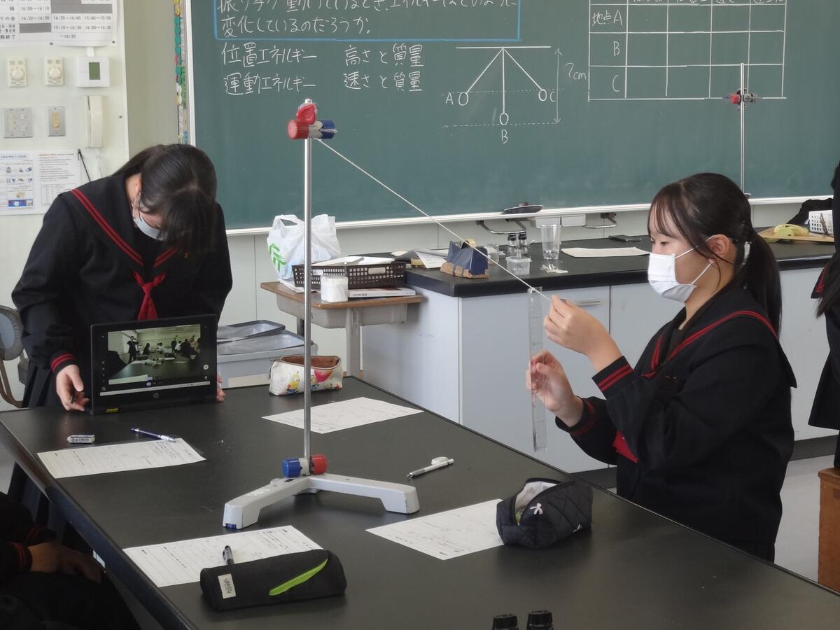 今日は、3時間目に太田原先生の研究授業が行われました。『位置エネルギー と 運動エネルギー』の単元名で、2つのエネルギーの関係性を検証し、自分の言葉で説明でるようにすることを目標とされていました。