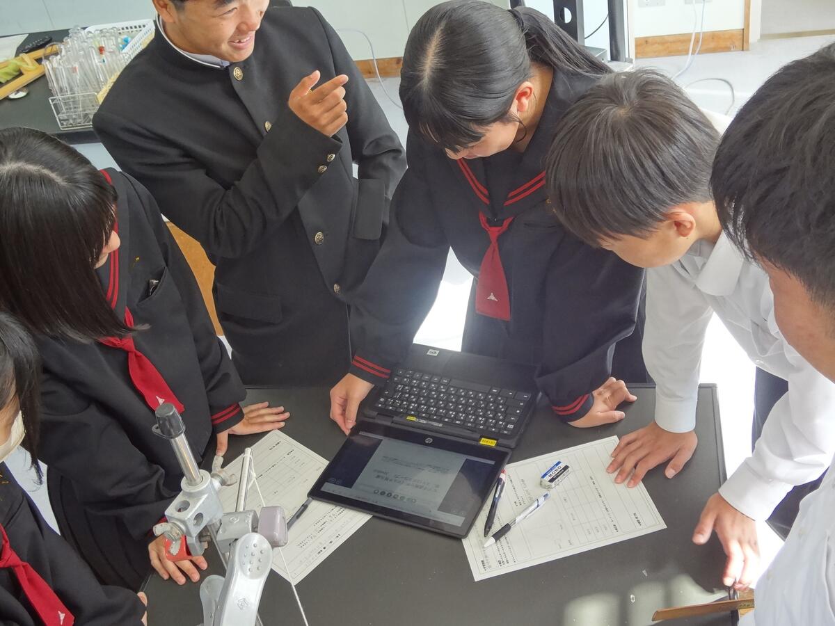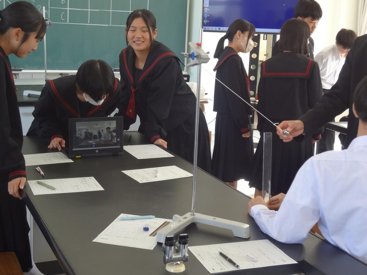 導入の動画や先生の説明に食い入る生徒、仮説をグループでディスカッションする生徒、実験を楽しむ生徒たちは、あっという間の50分の授業でした。3年1組のみなさん、太田原先生ありがとうございました。