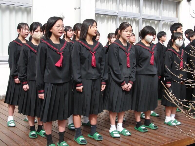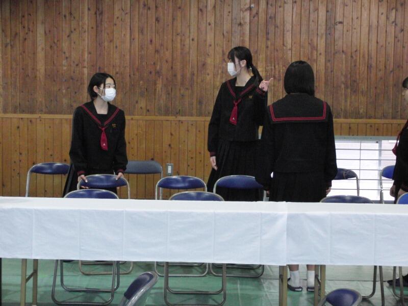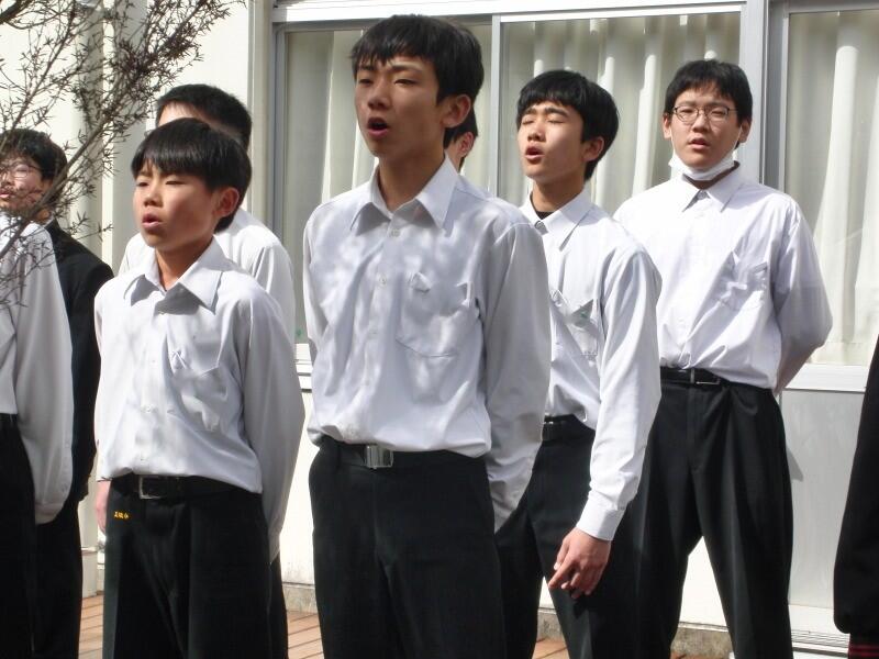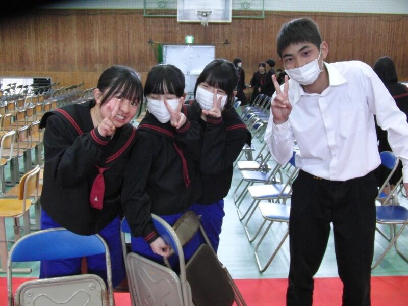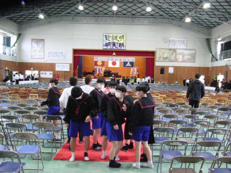 5時間目は、2年生は式典会場設営などに励み、1年生は3年生を贈る合唱練習でした。当日の1年生の合唱、2年生・3年生の合唱、3年生の合唱、最後の校歌、入退場、送辞、答辞、氏名点呼の全てがとても楽しみです。