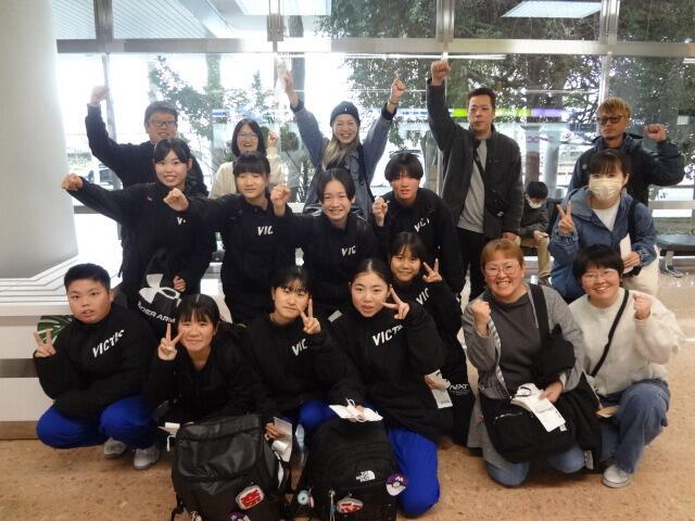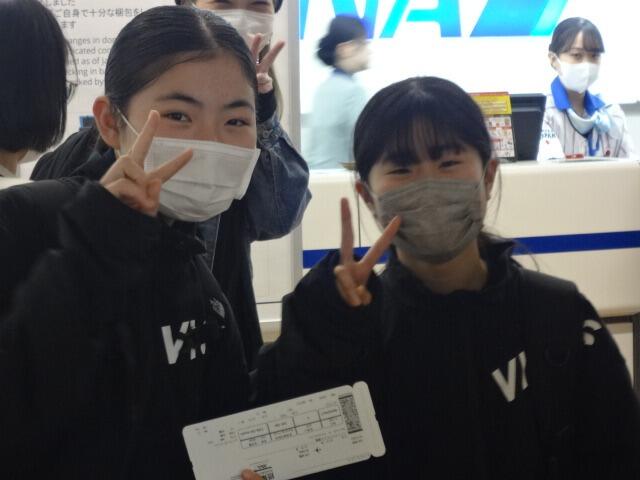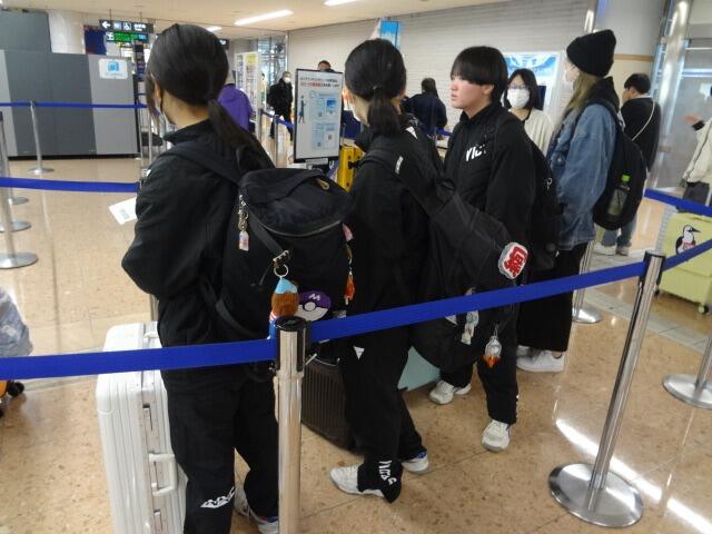 午前9時10分の飛行機で、女子卓球部が九州大会に向けて出発しました。朝の飛行場では、気負う様子はなく、しっかりとたてられた目標に向かって歩んでいる様子がうかがえました。