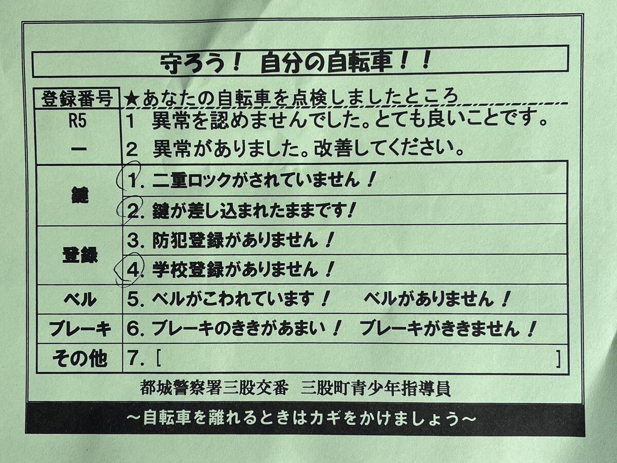 午前中に、三股交番と青少年育成協議会の方々が、自転車の点検をしてくださいました。