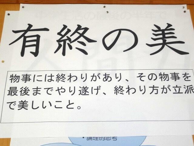3年生は、「有終の美」です。進路決定も当然ながら、卒業生としての「残り姿」を考えてもらいたいからでしょう。