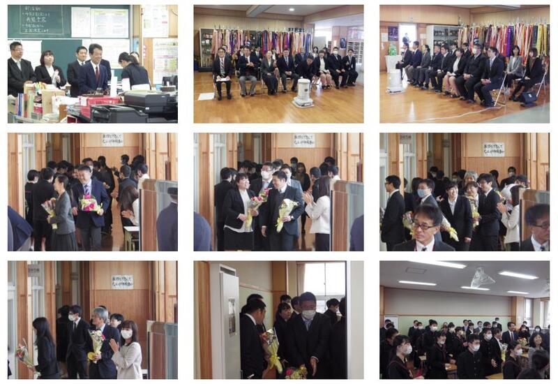 職員室で挨拶を頂き、放送で全校生徒へのあいさつ・各教室の巡回で離任式が行われました。