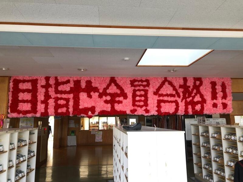 1月末の私立入試の前に、生徒玄関に飾られた応援メッセージです。