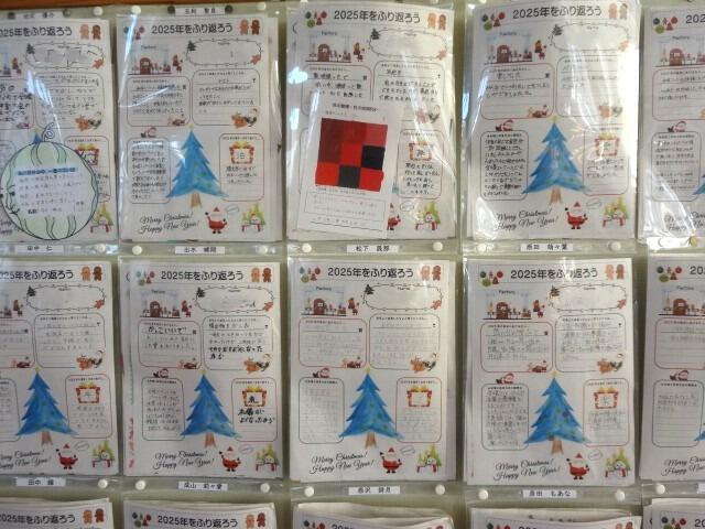 3年生の教室掲示は受験モード、2年生は今年のまとめに模様替えされていました。学年によって年末の迎え方が違うようです。