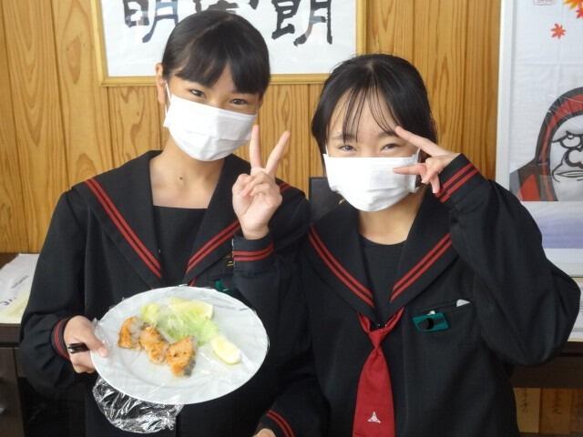 1年生は調理実習の第2弾に入ったようです。1年7組の二宮さんと石田さんが私にも届けてくださいました。鮭のムニエルがとても美味しかったです。ごちそうさまでした。