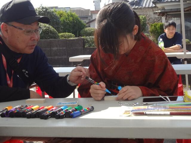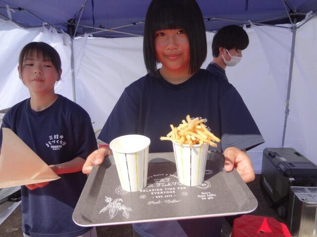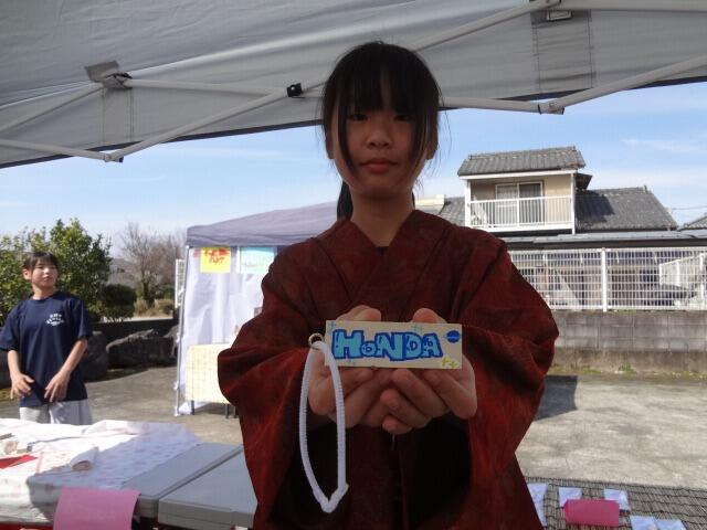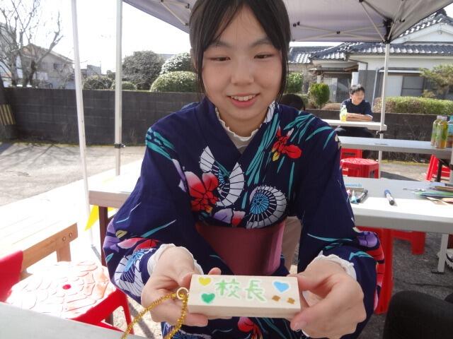 一昨日の午後から三股中学校まちづくり部の出店をのぞいてみました。ポテトのタルタルソースやチーズハットグをいただき、ものづくりコーナーでキーホルダーを作ってもらいました。屋台では、Tシャツ姿で調理する頼もしい姿、ものづくりでは、浴衣を着付けデザインを書き上げる風流な姿に楽しいひと時を過ごさせてもらいました。三股町に住む人々がワクワク楽しくなり、多くの人が「行ってみたいな」と思う未来の三股町を創造してください。