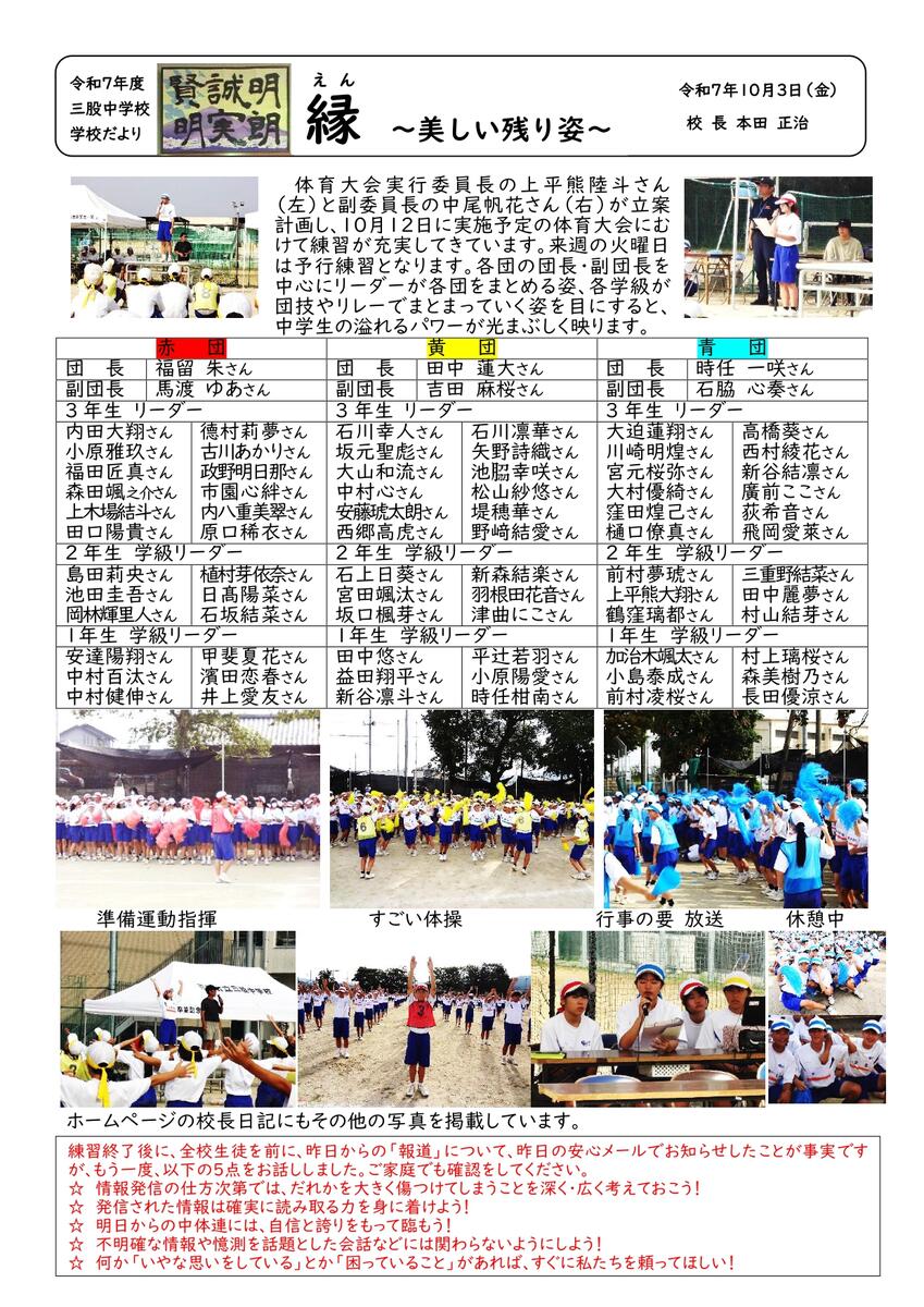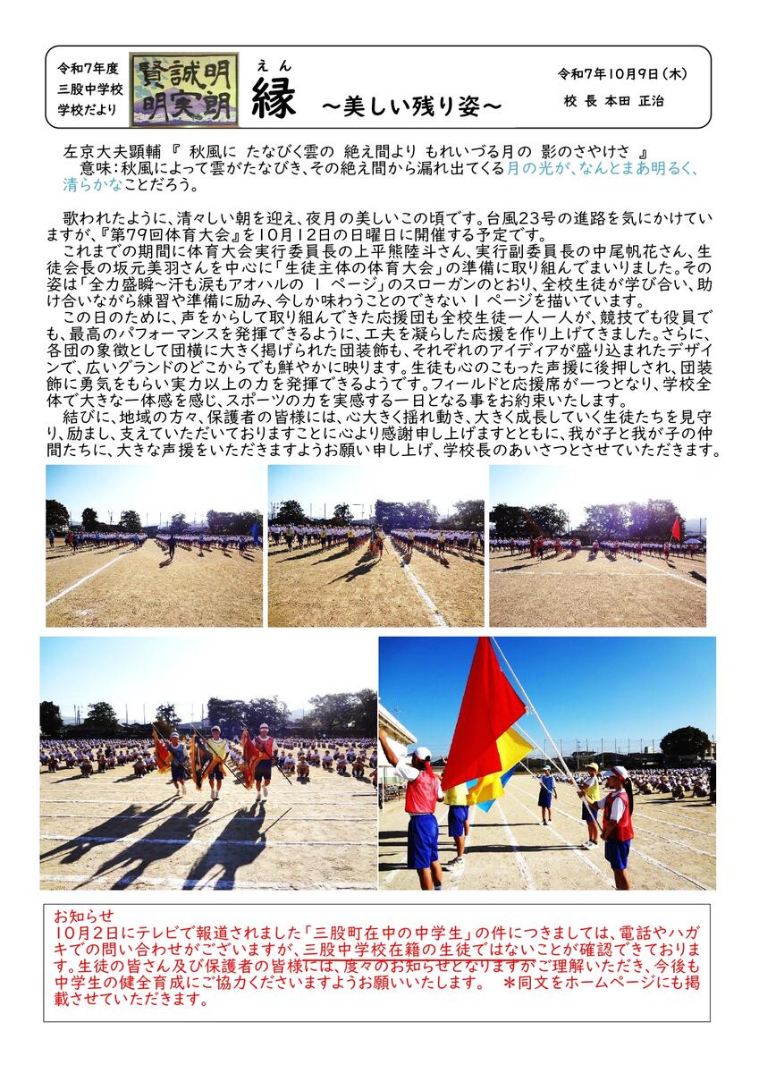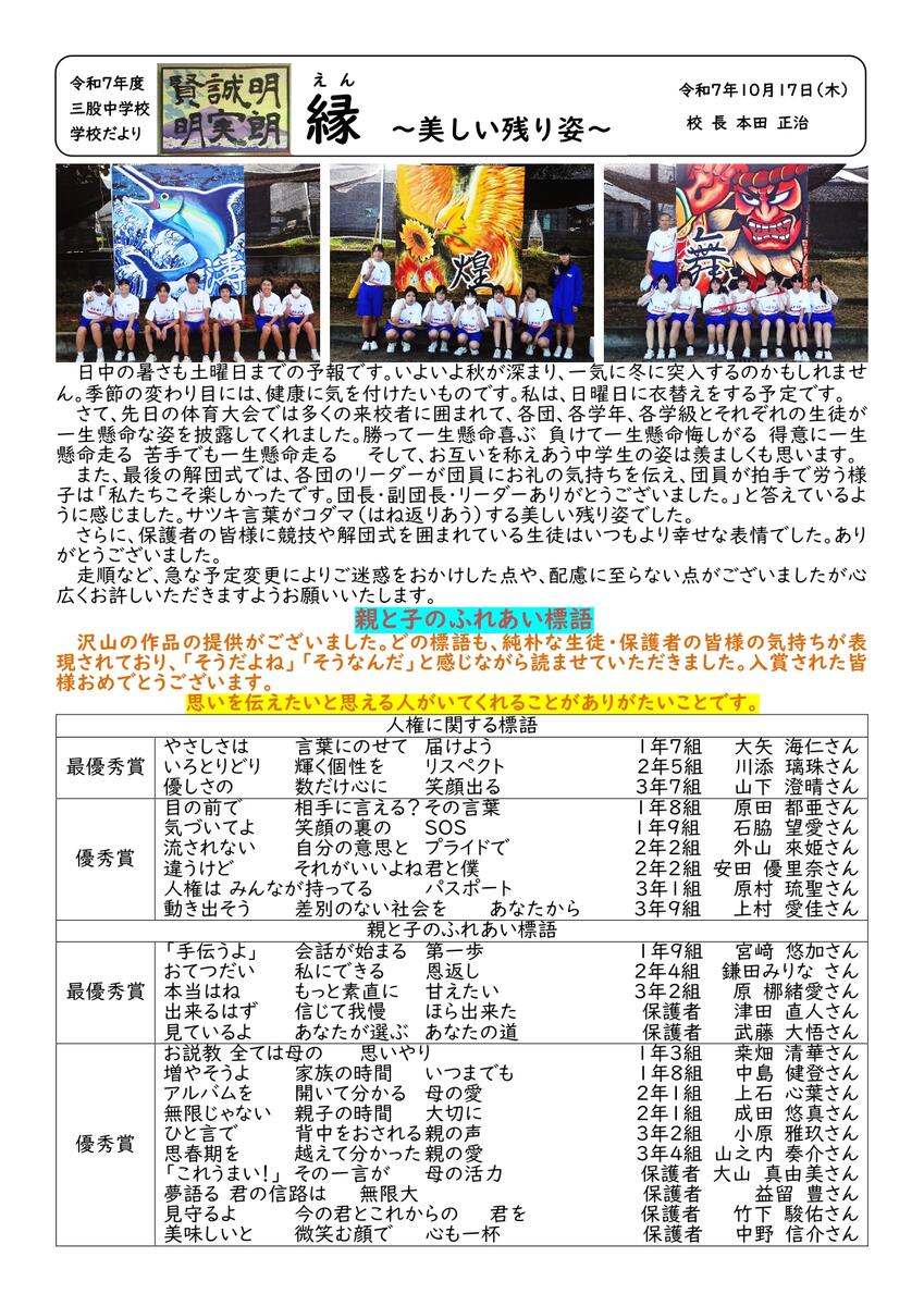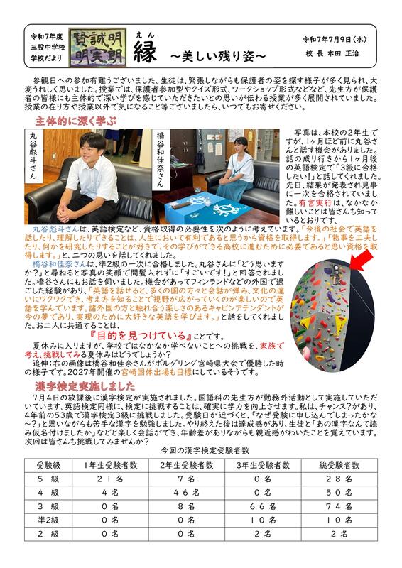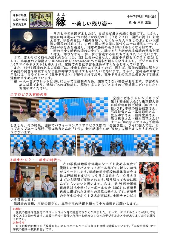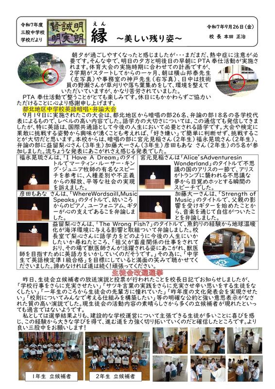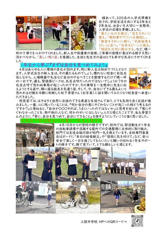 どうぞ、保護者のみなさま、地域のみなさま、984名の生徒と、80名の教職員へあたたかいご支援とご協力をよろしくお願いいたします。