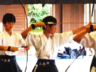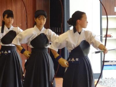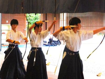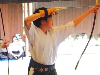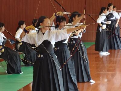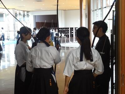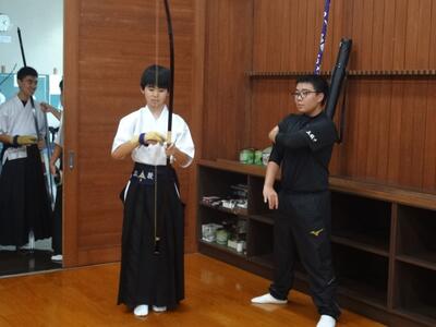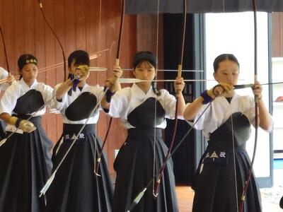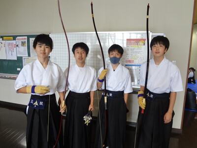 弓道競技の地区大会は男子団体が見事優勝しました!おめでとうございます。女子団体の準決勝も3位決定戦も大接戦の末、惜敗でした。個人戦は男子の部で福元奏人さん優勝、盛田遥斗さん準優勝、女子の部では原田萌々葉さんが3位でした。おめでとうございます。