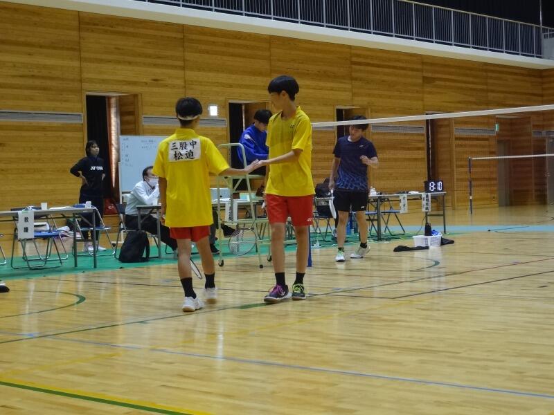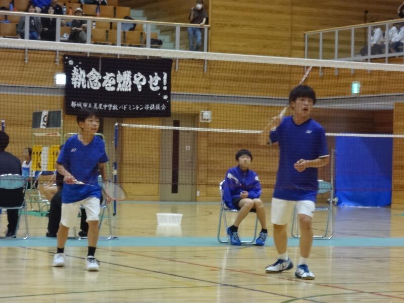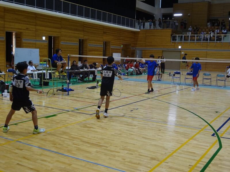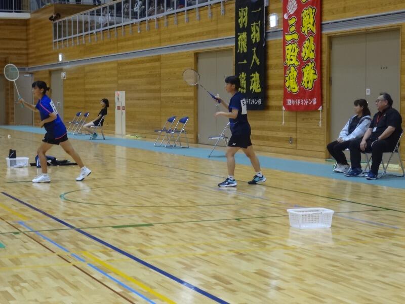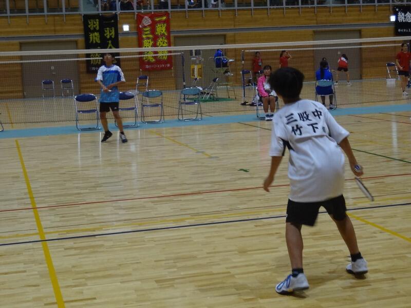 男女バドミントン部はシングルス、ダブルスが行われ、ダブルスでは男女とも決勝戦を三股中学校で戦う展開でした。