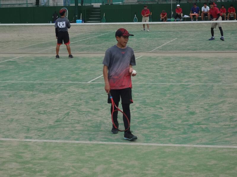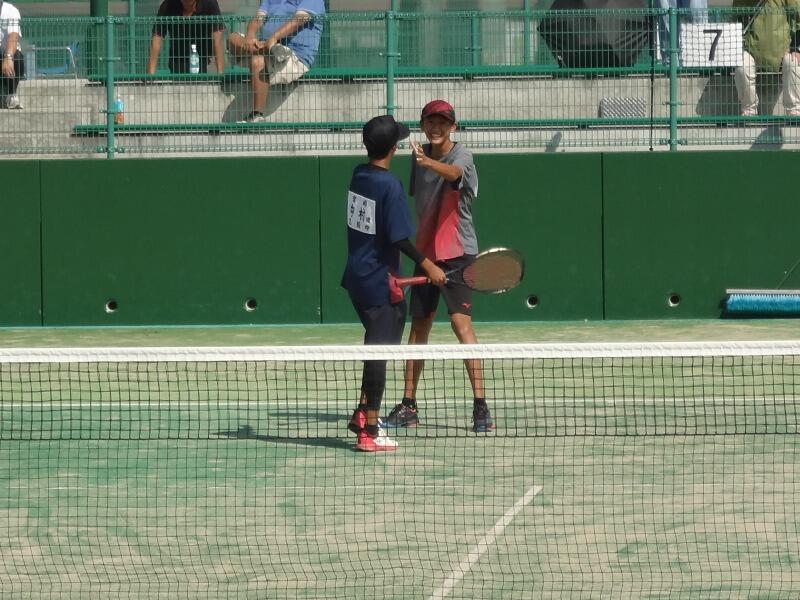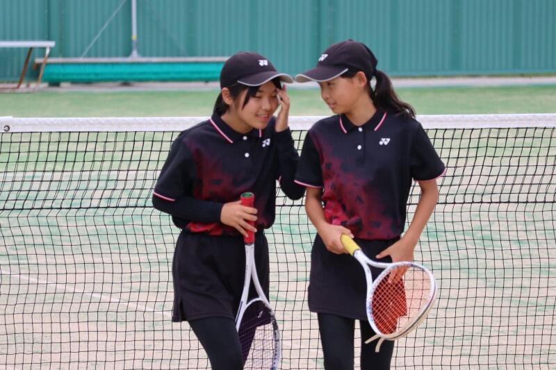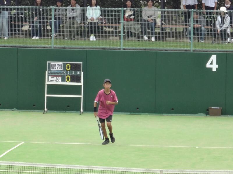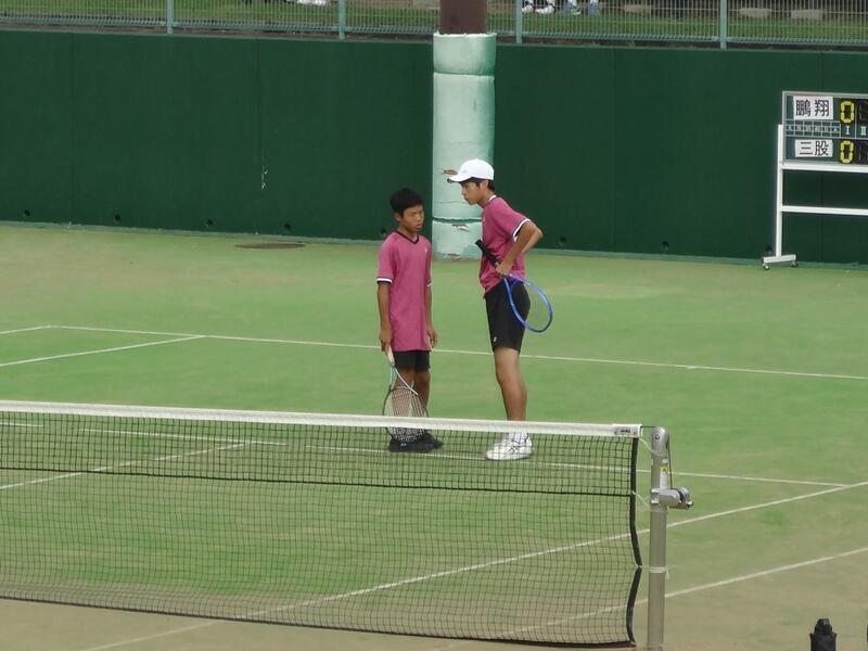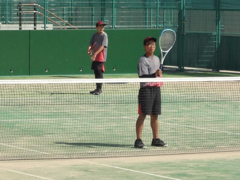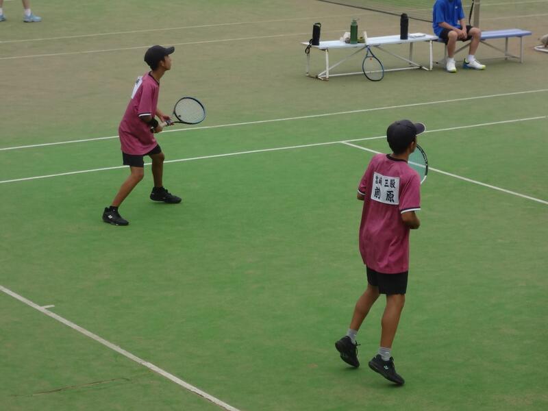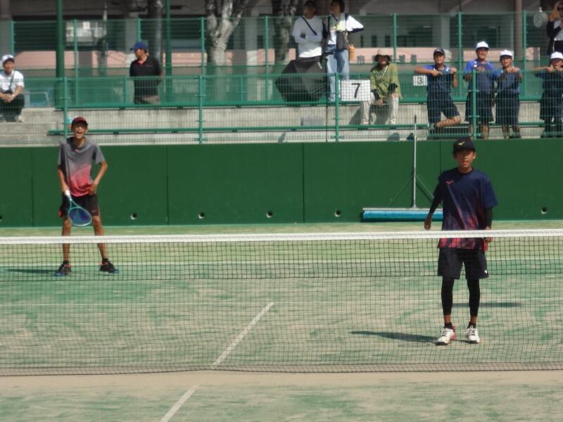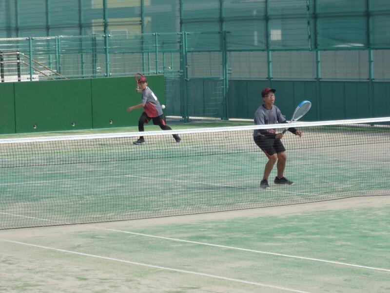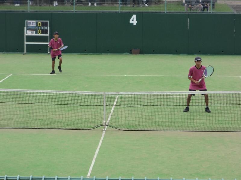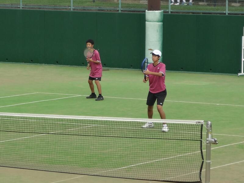 男子ソフトテニス部は、2ペアの県大会出場が決定しました。1年生ペアは元気いっぱい声を出し、コートを走り回り県大会出場決定戦を圧勝しました。
