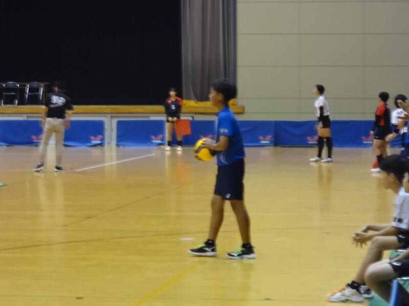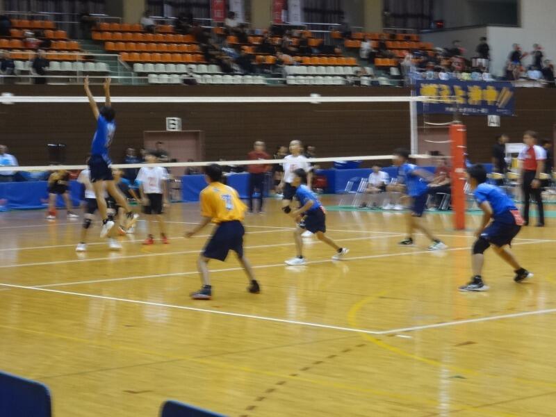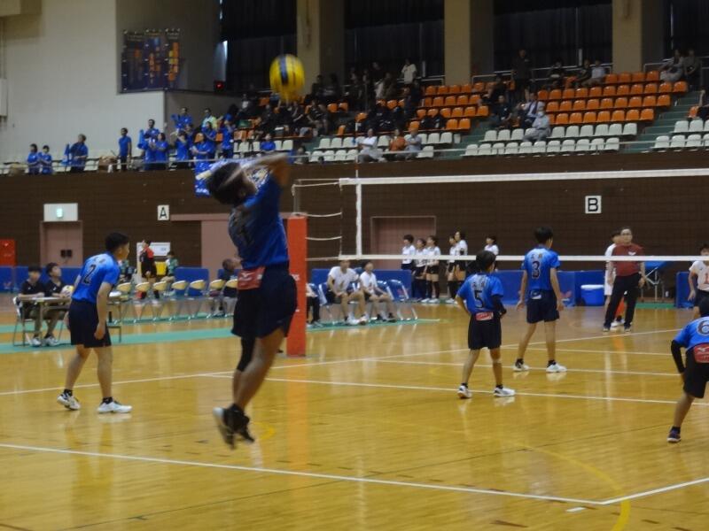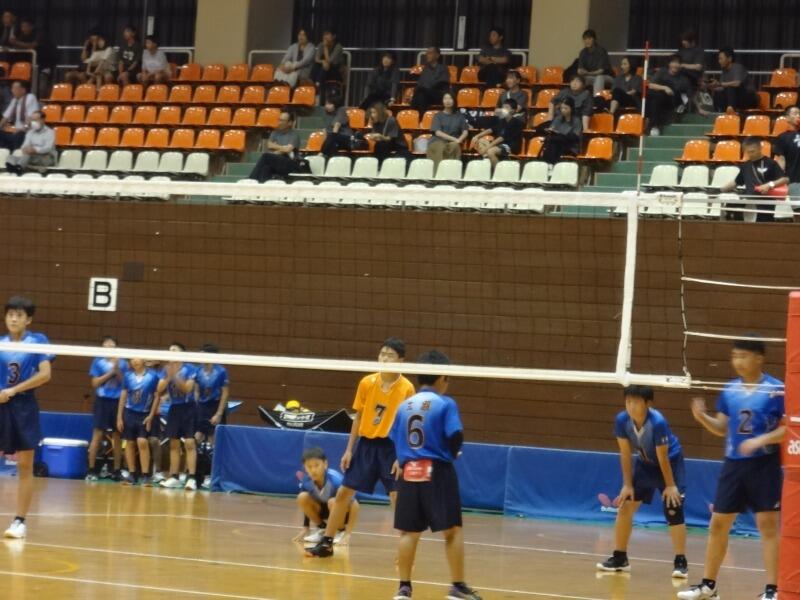 バレーボール女子はサーブで攻めるゲームを展開しましたが、力及ばず予選リーグでの敗退でした。山之口中学校さんとの合同チームは1勝1敗と善戦し、明日の決勝トーナメント進出です。