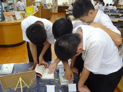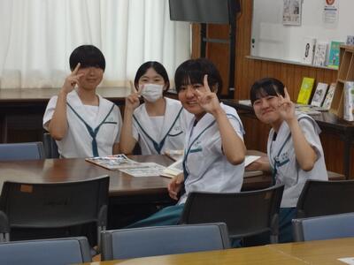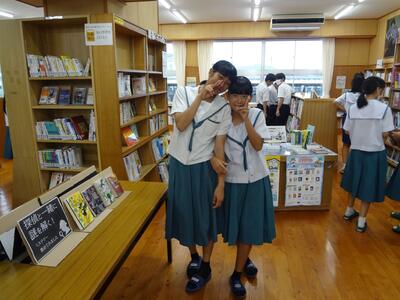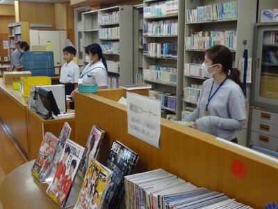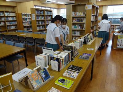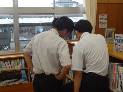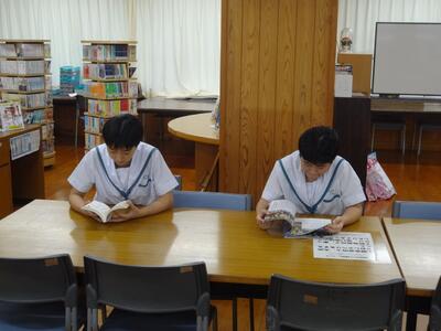 雨の日の昼休みは、図書室で過ごす生徒が多いようです。図書委員会が管理をしています。