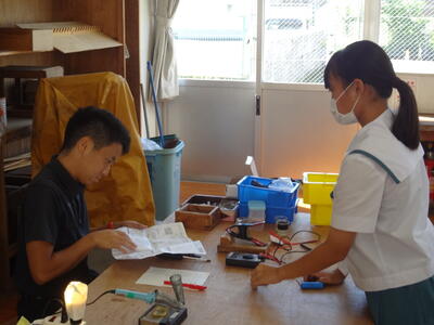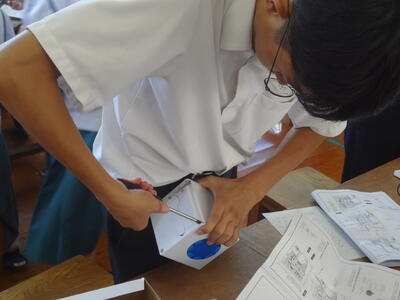 本日の授業では、電子回路作成に試行錯誤しながらも着実に完成に近づけていく技術科。修学旅行に持参するバッグをミシンを使って製作する家庭科。暗いところでアートが美しく光り輝くインテリア作成の美術科の様子がとても楽しそうでした。