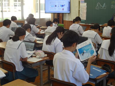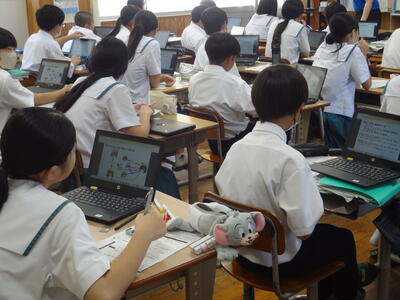また、社会科では、リトルティーチャーからの質問を、各々がタブレットを駆使して調べ、解説を踏まえながら回答する活気のある授業や、モニターを利用し、動画や図で分かりやすく解説を行う理科や数学の授業など、ICTを活用した授業が多くみられました。