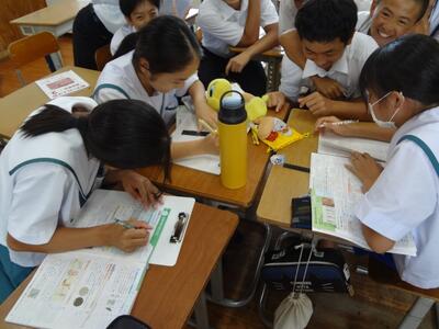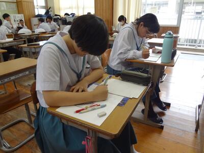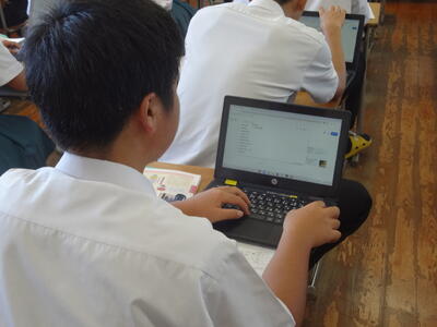 さて、本日の学校では、3年生を中心に生徒会関係の活動が行われていました。生徒会室では、選挙管理委員会のメンバーが各学級より立候補された生徒の「公約」を打ち込み、データとして整理していました。生徒会選挙も実務に突入です。隣の教室では、生徒会執行部が生徒集会で発表する「寸劇」の準備を進めていました。原点に返り、全校生徒に学校生活を考えてもらうための「寸劇」であり、配役や内容の確認を楽しそうにしていました。主体的に深く考えられた取組です。