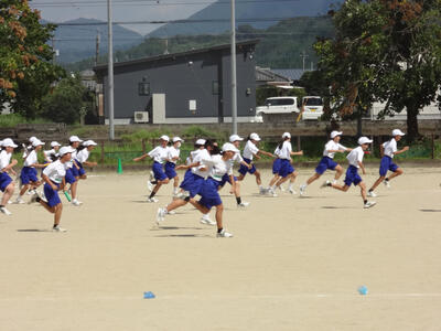 前日からの大雨と台風の接近により、無事開催できるのか心配な部分もありましたが、当日は晴れ渡る青空のもとで元気いっぱい体育大会を行うことができました。