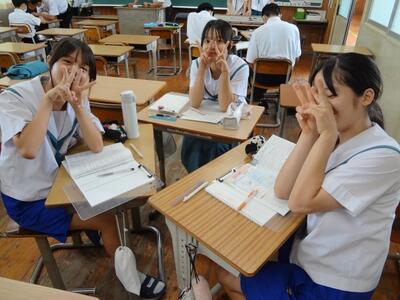 台風15号の接近に伴い、断続的に降り続ける雨の影響が気になります。また、台風通過後の明日は,気温35度を超える猛暑の予報を見ると、体調管理についても気になるところです。保健だよりでもお知らせしていますが、睡眠と栄養、個人に適した生活リズムを整えて登校し、学校生活を充実させてもらいたいと願います。