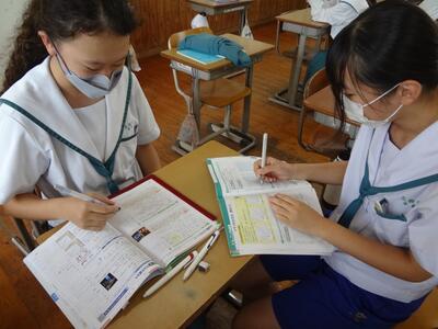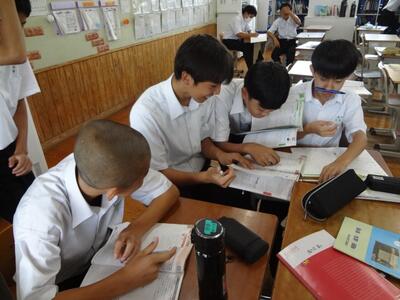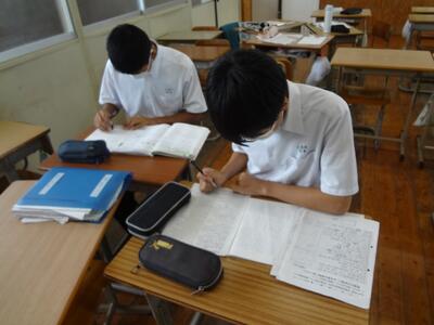 雨の日の今日は、学級担任の先生が見守る中、教室で楽しむ生徒や、明日からの中間テストに備えて学習する生徒が多い昼休みでした。