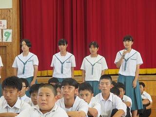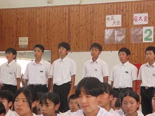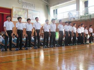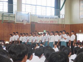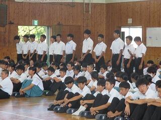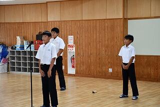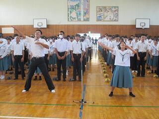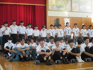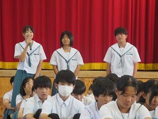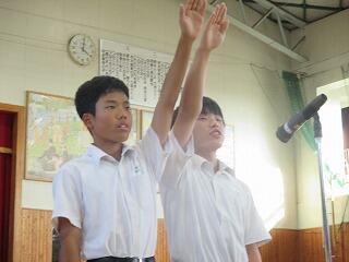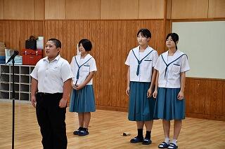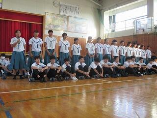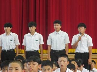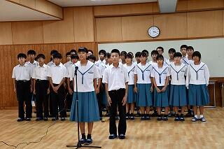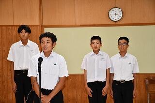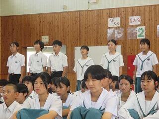 9月19日(金)、残暑の残る中、都城地区秋季体育大会に向けた選手壮行会がリモートで行われました。どの部もこの夏から新体制で動き出し、新たに部の中心となった2年生たちが、それぞれの決意表明を立派に行うことができました。