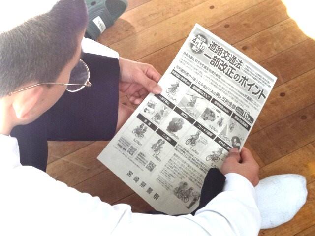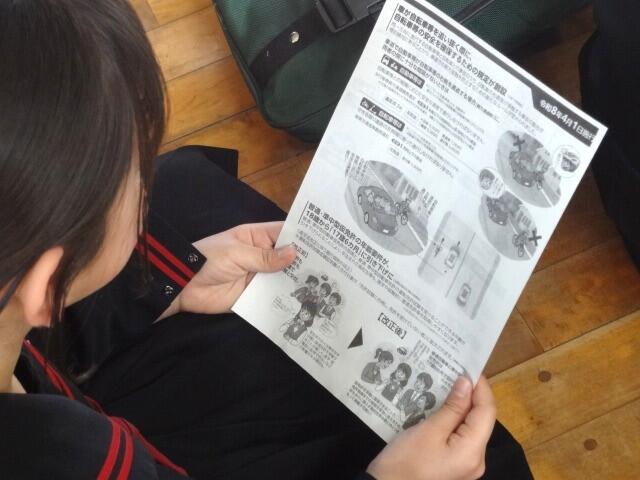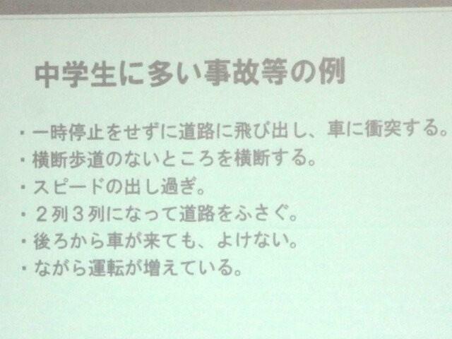 テスト終了後に1年生自転車通学生の集会で、泥谷先生より、「車」としての「自転車」を利用するための責任についてお話がありました。自転車通学生のみならず、私たち全員が意識を大きく変えなければ大変です!