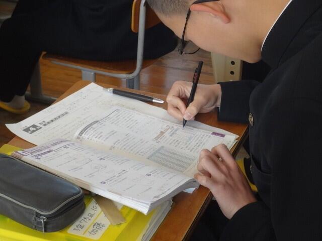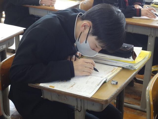 さて、二日間で実施された学年末テストが終了です。よく頑張りました。1・2年生は「やったー」と嬉しそう、3年生は「普通」の感じです。学年によって、雰囲気が違うのは立場の違いでしょう。