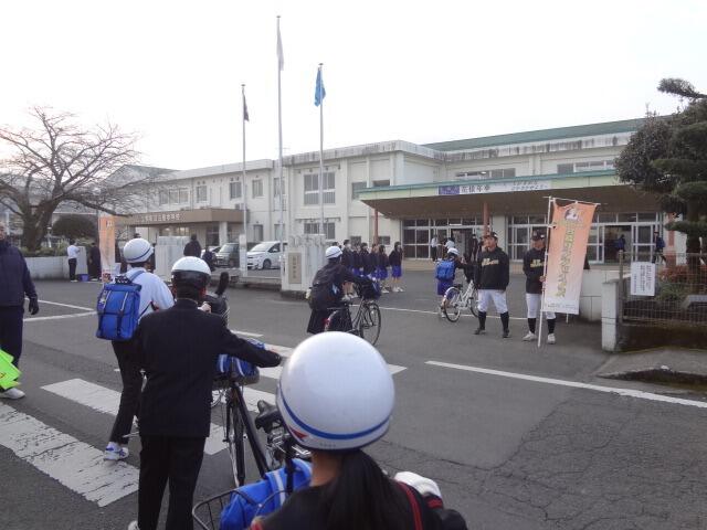 今朝は、宮崎サンシャインズの皆様が三股中学校の挨拶運動に参加してくださいました。宮崎サンシャインズは、野球を通じて「健康推進」「地域交流」「地域貢献」でふるさと宮崎の活性化を目指している野球チームです。旭ヶ丘運動公園を利用しての練習や練習試合を頻繁に計画されています。朝早くからありがとうございました。