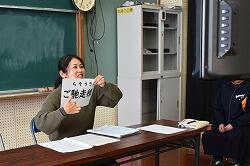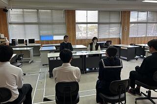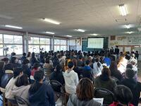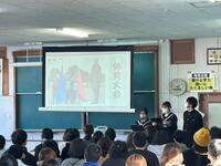 22日(木)午後、令和8年度入学予定の6年生と保護者をお招きし『新入生説明会』を開催しました。当日は冷え込んだため、会場を体育館から技術室に変更したため窮屈な中でしたが、参加した6年生は真剣な態度で臨んでいました。