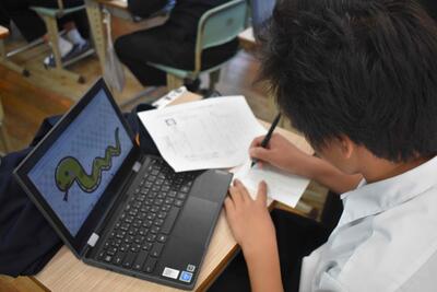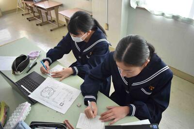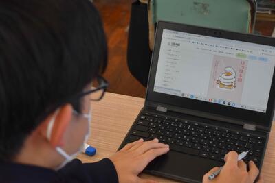 生徒の中には「初めて年賀状を書きます」という生徒もいましたが、バランスを整えながら宛名書きをしたり、タブレットを活用して年賀状にふさわしい文言やイラストを調べたりしながら、心を込めて書きました。