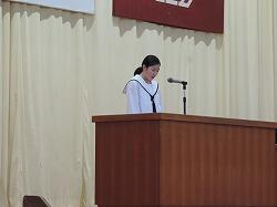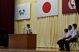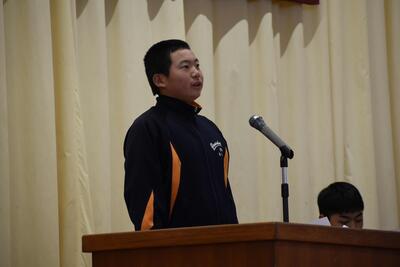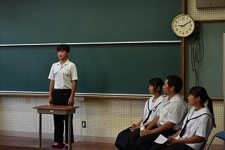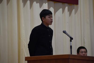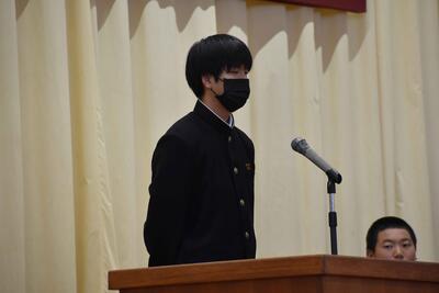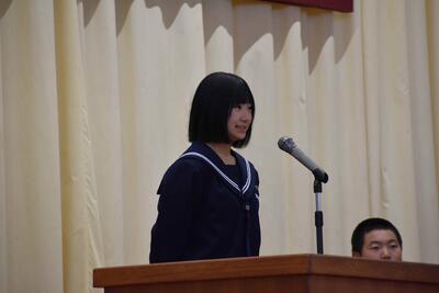 2学期を振り返って、各学年と生徒会の代表生徒による発表がありました。