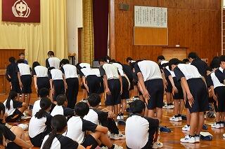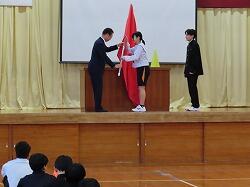10月15日(水)、生徒会任命式が行われました。旧生徒会執行部によるあいさつでは、これまでの活動を振り返りながら感謝の言葉が伝えられました。これまで学校をリードしてきた旧生徒会執行部の思いを引き継ぎ、新たなメンバーが新体制での活動をスタートさせます。新生徒会長は、「みんなが『この学校でよかった』と思える学校づくりをしていきたい。」と力強く宣言し、その言葉に、全校生徒から大きな拍手が送られました。