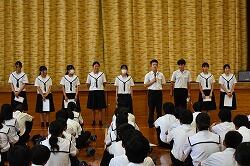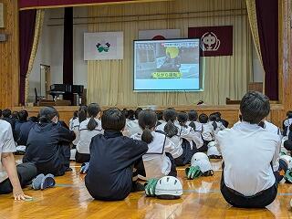 閉会行事では、1・2年生とお世話になった先生方からのお祝いメッセージビデオをみんなで鑑賞しました。