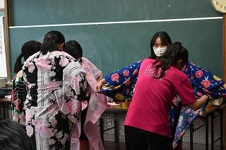1時間目は国際交流員のヤン・へジョンさんに韓国の文化や伝統的な服装「ハンボク」などを紹介していただきました。日本にはない文化や風習に驚く姿や、「なるほど」と納得する姿が印象的でした。