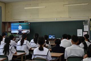 「どんな仕事にも意味がある」、「人のために働くことが大切」というお話に、生徒たちは働くことの意義について考えながら聞いていました。10/30(木)の授業に向けて、学びの意欲を高める貴重な時間となりました。