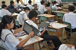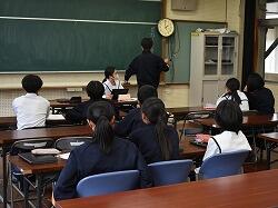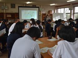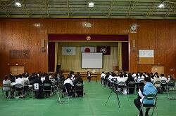 3年生は、総合的な学習の時間に作成した「未来マップ」を一人一人発表しました。和気あいあいとした雰囲気の中で、お互いの考えに触れるよい機会となったようです。授業後は進路に関する説明会を行いました。授業から一転、真剣な表情の3年生でした。