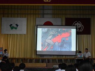 2年生は、「戦後80年~修学旅行へ向けて~」をテーマに、都城大空襲についての紙芝居を発表しました。ご協力いただいた「結の会」の皆様の思いも一緒に届けられたのではないかと思います。