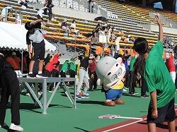 10月12日(日)、山之口地区ふれあい大運動会がクロキリスタジアムで行われました。本校生徒は選手として出場しただけでなく、役員として地域の方々と運営にも参画しました。