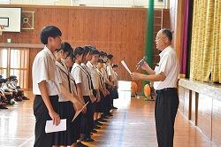 各学年の代表生徒に校長先生から修了証が授与されました。