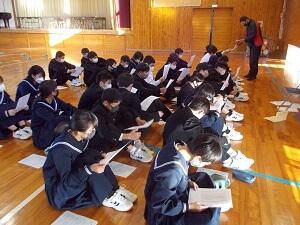 3月10日(木)に、3年生は学年生徒会による学年集会を行いました。これまでの学校生活を振り返りながら、卒業式までの心構えなどの話を聞きました。これから卒業式まで、校内の清掃活動や作文、卒業式の練習などを行います。残された中学校生活をしっかり過ごしてください。