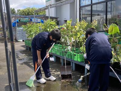 花植えや窓ふき、駐車場の清掃を行いました。みんな一生懸命、清掃活動に取り組みました。