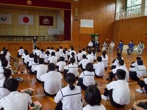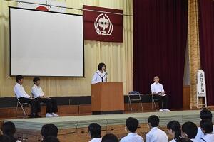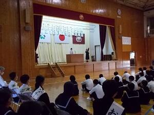 本年度は、選挙を実施するにあたり、都城市選挙管理委員会の方から出前授業として、選挙の意義や現状などについてお話をしていただきました。現在、18歳から選挙権が与えられており、若い世代の投票率が低いことも社会的な問題として取り上げられました。18歳になったら、選挙へ行きましょう。
