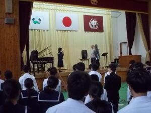 シンガーのWhoopin(ウーピン)さんとピアノ・キーボードの大西洋介さんによるゴスペル音楽の説明や演奏、生徒も参加しての合唱など、とても充実した時間を過ごすことができました。ご来校いただき、ありがとうございました。
