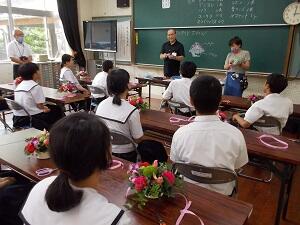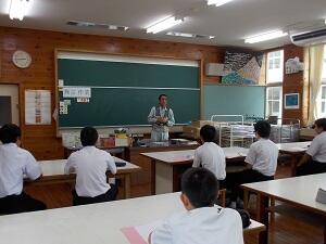 本日は、公務員として、山口 弘徳 様、片平 真之 様、看護師として、松﨑 幸子 様、福祉施設として、高山 忠生 様、機械加工技能士として、古川 宏 様、古川 佑亮 様、農林造園業として、岳 一孝 様、計7名の皆様に来校していただき、講話を聞かせていただきました。生徒も熱心に話を聞き、いろいろな質問をしていました。