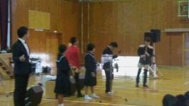 途中で楽器体験コーナーがあり、生徒たちも一緒に演奏に加わりました。(T)