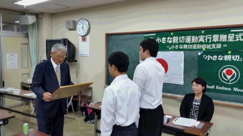 平成28年度「小さな親切」運動で、山之口中学校の生徒会が学校表彰を受けました。